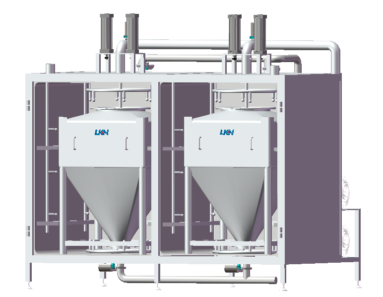優(yōu)康恩自動化料系統(tǒng)用于對粉料和其它配料進行乳化和水化的混料系統(tǒng)設備。其中真空混料機可在密閉真空容器下進行高速剪切乳化混合綜合產(chǎn)品、各種粉末和液體等,每小時化粉量可達到3T-5T。優(yōu)康恩自動化料系統(tǒng)可利用真空作用將配料輸送到化料設備中,省去了操作工承擔這項繁重工作的需要。